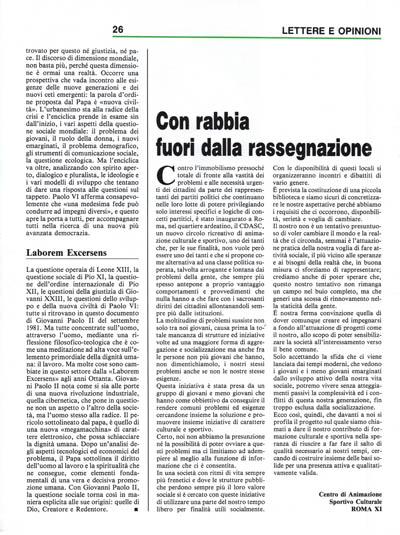 La moltitudine di problemi sussiste non solo tra noi giovani, causa prima la to? tale mancanza di strutture ed iniziative volte ad una maggiore forma di aggregazione e socializzazione ma anche fra le persone non più giovani che hanno, non dimentichiamolo, i nostri stessi problemi anche se non le nostre stesse esigenze.