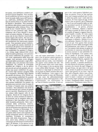 Il 1963 non è una fine ma un inizio. E quelli che Sperano che il «Negro» aveva bisogno di soffiar via il vapore e sarà ora contento, avranno un brusco risveglio. Non ci sarà né riposo né tranquillità in America fino a quando il «Negro» non otterrà i suoi diritti di cittadino. Le trombe d'aria della rivolta continueranno a smuovere le fondamenta del nostro paese fino a quando non verrà il giorno luminoso della giustizia.
