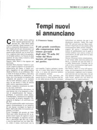 Il più grande contributo alla comprensione delle istanze giovanili degli anni '70 nella DC venne dal Moro lasciato all'opposizione nel partito.