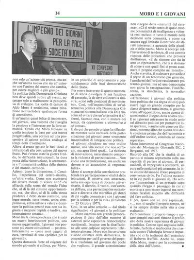 Personalmente, sono convinto che questo lavoro ci viene facilitato dal fatto che dalla lezione di Moro possiamo individuare un capitolo che egli ci ha idealmente dedicato. Dalla fine degli anni '60 i giovani sono per Moro interlocutori importanti di una analisi della trasformazione della società italiana, i soggetti del nuovo, i portatori delle istanze di cambiamento con le quali il sistema politico non poteva evitare di confrontarsi ed alle quali doveva dare riposte esaurienti.