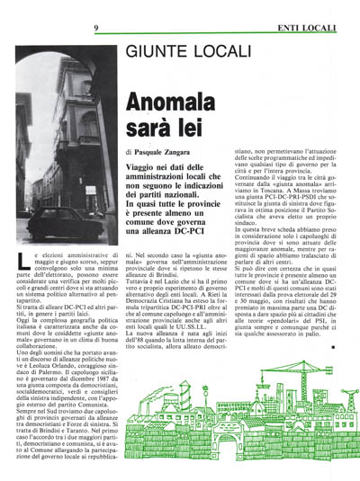 Le elezioni amministrative di maggio e giugno scorso, seppur coinvolgono solo una minima parte dell'elettorato, possono essere considerate una verifica per molti piccoli e grandi centri dove si sta attuando un sistema politico alternativo al pentapartito.