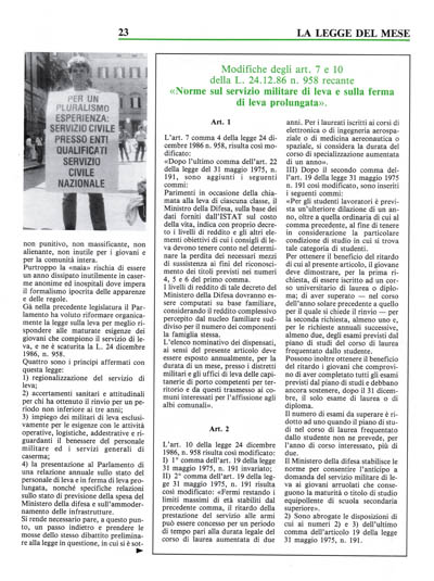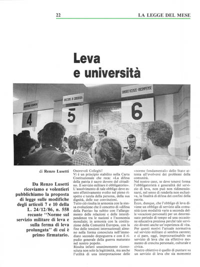 Su queste basi ci sembra comunque importante riaprire il dibattito sulla leva almeno per ridefinirne gli aspetti strutturali. Ma sarà necessario ancora diverso tempo per giungere ad un elevato stadio di maturazione del problema.