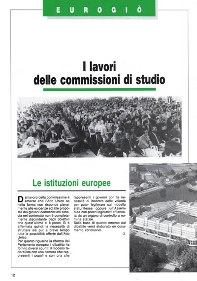 Dal lavoro della commissione è emerso che l'Atto Unico se nella forma non risponde pienamente alle esigenze ed alle proposte dei giovani democristiani tuttavia nel contenuto non è completamente discordante dagli obiettivi che quest'ultimo si è posto. Si è affermata quindi la necessità di sfruttare sia pur a breve tempo tutte le possibilità offerte dall'Atto Unico.