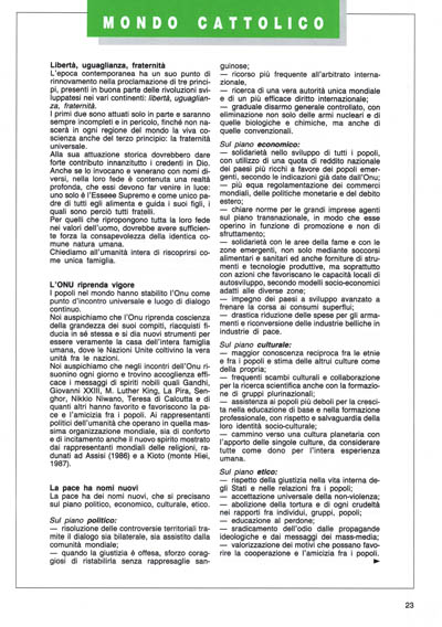 Riteniamo che nel più profondo di ogni uomo e donna della terra, di qualsiasi lingua, nazione, cultura, crepo religioso e politico, vada maturando in forma sempre più chiara il bisogno di liberazione, che si precisa in queste libertà fondamentali: