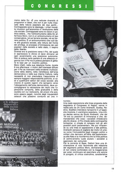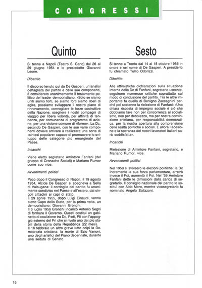 «La politica italiana nutre una grande speranza: si trova alla vigilia di una nuova importante I ripresa perché la Dc ne assume la guida con razionalità e assieme con la stessa passione civile che la contraddistinse alle sue origini, al momento della prima ricostruzione democratica della nazione». E conclude: «La partita decisiva per la formazione certa della democrazia in Italia resta affidata alla capacità unitaria della Dc di saper guidare la trasformazione sociale civile e politica del paese. Resta affidata alla nostra capacità di scrutare l'avvenire sapendo cogliere la sfida che l'ignoto ci pone. A questa sfida non possiamo, non dobbiamo, non vogliamo sottrarci».