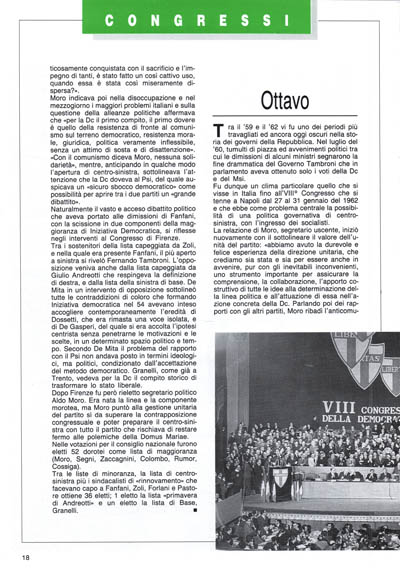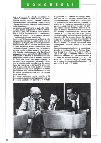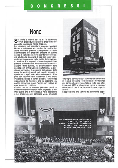 «Impegno democratico»; la corrente fanfaniana di «nuove cronache» che criticava l'inefficienza del partito che aveva portato al forte calo elettorale del 1963 e al governo Leone e riproponeva perciò per il partito una ripresa organizzativa.