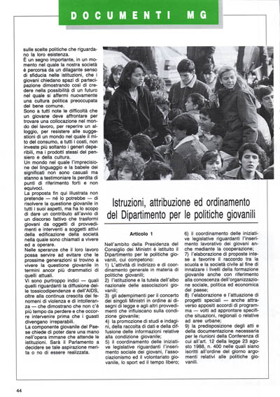 - la diffusione attraverso tutti i mezzi di comunicazione della conoscenza delle normative e delle iniziative governative a favore dei giovani.