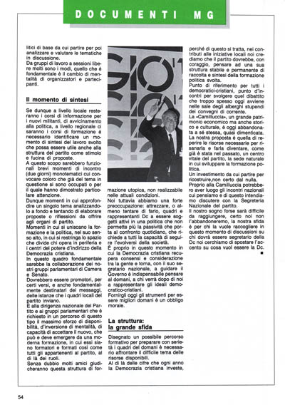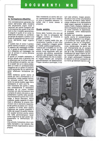 Noi tuttavia abbiamo una forte preoccupazione: attrezzare, o almeno tentare di farlo, quadri e rappresentanti Dc a essere soggetti attivi in una politica che non permette più la passività che porta al confronto quotidiano, che richiede a tutti la capacità di seguire l'evolversi della società.