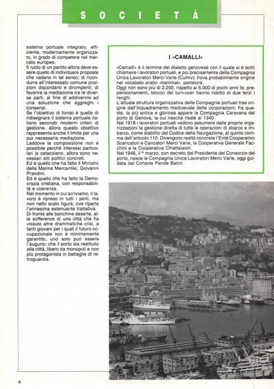 Crediamo nella necessità di un libero mercato in un libero porto... La costruzione della Genova del 2000 passa soprattutto attraverso il Porto: un Porto che appartiene alla città e che deve muoversi a passo con essa, un Porto che racchiude la nostra storia ed è presupposto per il nostro futuro.