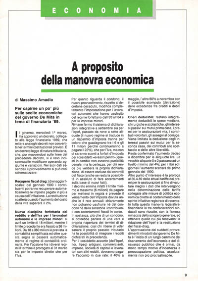 L'approvazione dei suddetti provvedimenti introdotti dal governo De Mita è l'inizio di un lungo cammino del risanamento dell'economia e del disavanzo pubblico che è ormai, da molto tempo motivo d'incertezza e preoccupazione politica, assolutamente non più procrastinabile.