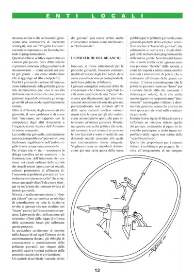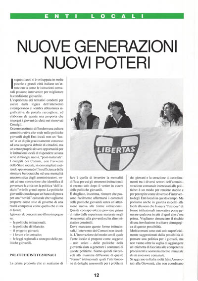 É sbagliato, insomma, ritenere che possono facilmente affermarsi i contenuti delle politiche giovanili senza un'attenzione nuova alle forme istituzionali. Questa consapevolezza proviene prima di tutto dalle esperienze maturate negli Assessorati alla gioventù ed in altre iniziative consimili.