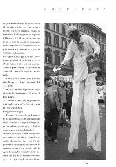 Un'ultima considerazione ci sembra opportuno dedicare alla natura stessa del movimento che, nato democraticamente, tale deve rimanere, poiché la tentazione di alcuni gruppi di impedire il libero scambio di idee negando a tutti gli studenti la facoltà di intervenire nelle assemblee può far perdere alla legittima critica studentesca la capacità di crescere politicamente.