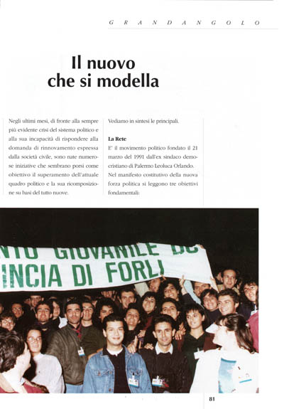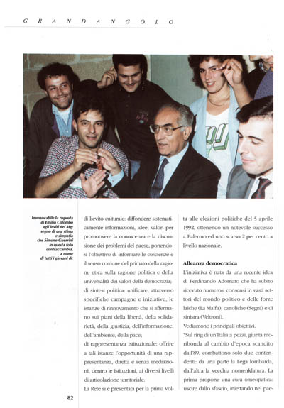 "Sul ring di un'Italia a pezzi, giunta moribonda al cambio d'epoca scandito dall'89, combattono solo due contendenti: da una parte la Lega lombarda, dall'altra la vecchia nomenklatura. La prima propone una cura omeopatica: uscire dallo sfascio, iniettando nel paese dosi massiccie di sfascio. La seconda fa l'impossibile per mantenere il suo corrotto potere e prepara, al massimo, qualche riformuccia analgesica. Manca un terzo polo che proponga al paese una radicale riforma democratica del sistema politico; manca insomma una grande alleanza democratica.