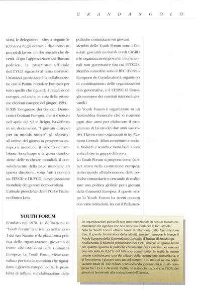 In previsione dell'Assemblea Generale del 1993, per lo Youth Forum è tempo di bilanci. Tra i risultati degli ultimi due anni di lavoro citiamo la pubblicazione di una Carta dei diritti dei giovani, l'intensificarsi dei progetti di collaborazione con i paesi africani, la pubblicazione di una guida di organizzazioni latino-americane con le quali instaurare rapporti in un prossimo futuro. Un bilancio positivo e allo stesso tempo una spinta a fare di più, perché dalle organizzazioni membre emerge la necessità di ampliare il raggio di azione del Forum, realizzando una politica giovanile veramente globale.