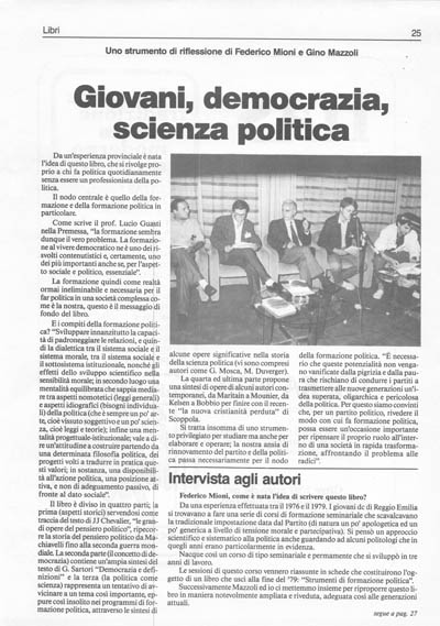 Le sessioni di questo corso vennero riassunte in schede che costituirono l'oggetto di un libro che uscì alla fine del '79: "Strumenti di formazione politica".