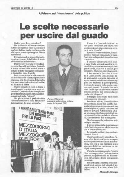 Importante però, e se mi è consentito, indispensabile, è che tutti prendiamo coscienza che il problema della mafia non tocca solo i palermitani ed i siciliani, ma tutto il Paese.