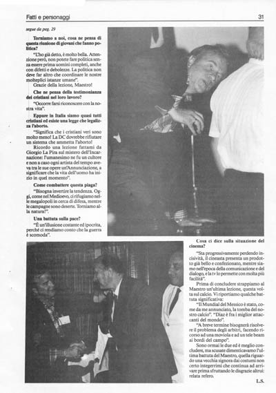 Prima di concludere strappiamo al Maestro un'ultima lezione, questa volta sul calcio. Vi riportiamo qualche battuta significativa: