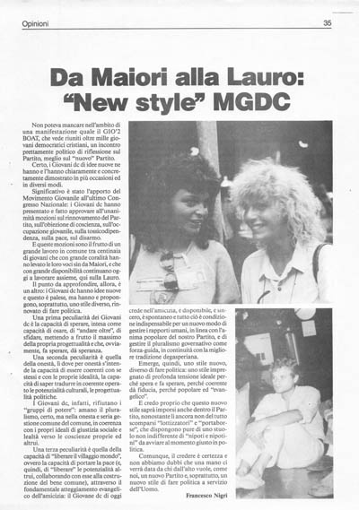 Il punto da approfondire, allora, è un altro: i giovani dc hanno idee nuove e questo è palese, ma hanno e propongono, soprattutto, uno stile diverso, rinnovato di fare politica.