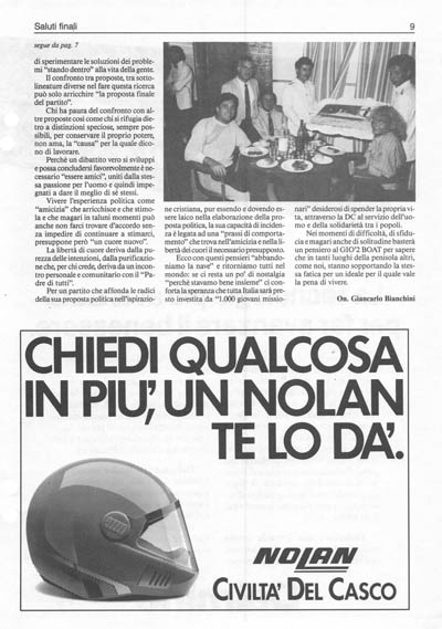 Quando ho accettato di collaborare a questa "avventura" non sapevo certo come si sarebbe sviluppata, ma intuivo che poteva essere una "grande occasione'' per il Movimento giovanile e per tutto il partito, anche se era presente il rischio che prevalesse l'aspetto "crociera". Mi pare ora di poter affermare che quello che abbiamo vissuto e che ancora stiamo vivendo, in attesa della conclusione finale con il nostro segretario De Mita, sta rivelandosi una grande speranza: una nuova classe dirigente sta maturando e si presenta con la capacità di interpretare i problemi del nostro tempo e di saper essere "partito di popolo" secondo la più autentica tradizione della DC.