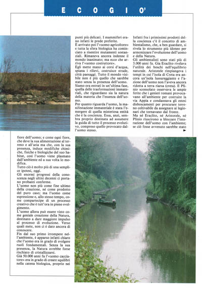 Infatti fra i primissimi prodotti della coscienza c'è il concetto di ambientalismo, che, a ben guardare, si rivela lo strumento più idoneo per armonizzare l'evoluzione dell'uomo e della Natura.
