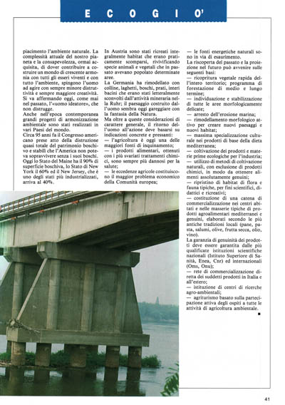 E non è neppure un caso che l'alimentazione più naturale e sana che si conosca è costituita dalla dieta mediterranea; è anch'essa infatti un prodotto del processo di armonizzazione fra l'uomo e l'ambiente.