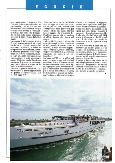 La legge dell'82 per la difesa del mare, per contro, non può dirsi del tutto inapplicata. L'Ispettorato per la difesa del mare, creato dalla legge, si propone come obiettivi strategici la stesura di un piano delle coste per la tutela dell'ambiente marino, l'allestimento di una rete di vigilanza, l'istituzione di numerose riserve marine, e via dicendo. La legge prevedeva per l'Ispettorato 400 dipendenti, ma le normative di compatibilità delle nuove assunzioni con la spesa pubblica hanno bloccato i concorsi: i dipendenti sono solo 12. Malgrado ciò, dall'inizio del 1984 opera la Consulta per la difesa del mare. E si è riùsciti a costruire le fondamenta per i traguardi prima accennati.