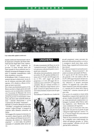 Alle prime elezioni politiche, tenute nel novembre 45, il Pc guidato da Rakosi ottenne solo il 17% dei voti (40 seggi) contro il 57% (245 seggi) dei piccoli proprietari, il 17,4% (69 seggi) dei socialdemocratici ed il 6,8% (23 seggi) dei contadini. Ma per volontà sovietica, il Pc ebbe il Ministero degli Interni con il quale si iniziò un'opera massiccia di arresti indiscriminati e di pressioni di ogni genere.