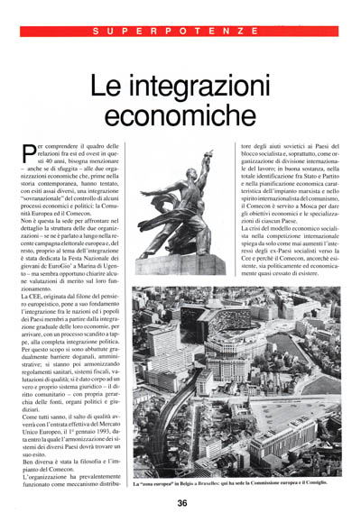 Per comprendere il quadro delle relazioni fra est ed ovest in questi 40 anni, bisogna menzionare – anche se di sfuggita – alle due organizzazioni economiche che, prime nella storia contemporanea, hanno tentato, con esiti assai diversi, una integrazione "sovranazionale" del controllo di alcuni processi economici e politici: la Comunità Europea ed il Comecon.