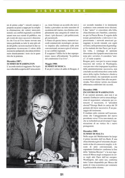 L'accordo storico è raggiunto. Per la prima volta dalla scoperta dell'arma atomica, viene firmato un accordo che non si limita a prevedere un tetto massimo di escalation del riarmo, ma elimina completamente una categoria di vettori nucleari, i più discussi, i più politicizzati, gli euromissili.