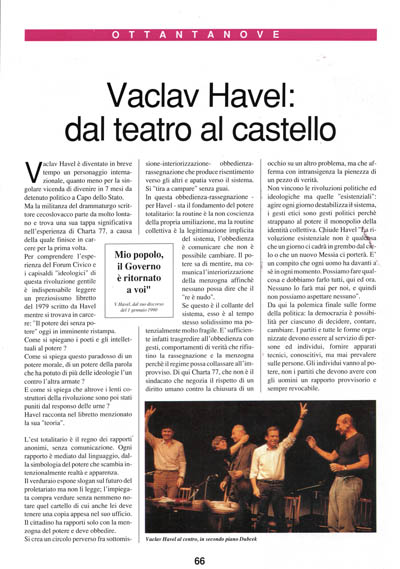 Vaclav Havel è diventato in breve tempo un personaggio internazionale, quanto meno per la singolare vicenda di divenire in 7 mesi da detenuto politico a Capo dello Stato.