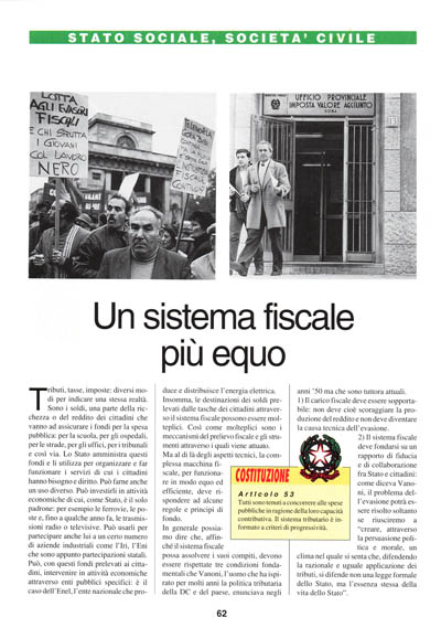In generale possiamo dire che, affinché il sistema fiscale possa assolvere i suoi compiti, devono essere rispettate tre condizioni fondamentali che Vanoni, l'uomo che ha ispirato per molti anni la politica tributaria della DC e del paese, enunciava negli anni '50 ma che sono tuttora attuali.