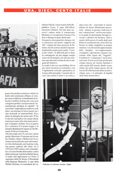 Non è più tempo di immaginare i mafiosi che giurano sull'immaginetta dei Beati Paoli, come nei migliori sceneggiati televisivi. La Mafia Holding & C. (la scelta della struttura societaria non è casuale) è mutata, si è modernizzata, ha assunto come Proteo il volto contemporaneo della finanza e della telematica. Assume i migliori commercialisti per le proprie contabilità "cinesi", invia i propri esperti in finanza nelle piazze del Nord Italia, occupa i migliori chimici nei propri laboratori di raffinazione dell'eroina, parla le lingue straniere.