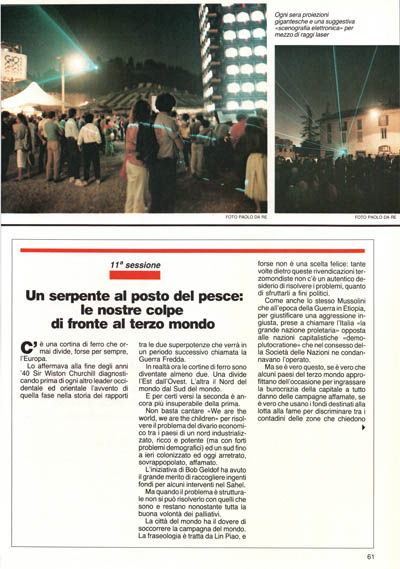 Ma se è vero questo, se è vero che alcuni paesi del terzo mondo approfittano dell'occasione per ingrassare la burocrazia della capitale a tutto danno delle campagne affamate, se è vero che usano i fondi destinati alla lotta alla fame per discriminare tra i contadini delle zone che chiedono l'indipendenza, è anche vero che il problema non si risolve con l'indignazione e la sospensione degli aiuti. Semplicemente con una più attenta distribuzione di questi. E soprattutto con un intervento che sia al tempo stesso mirato al breve ed al lungo periodo. Un problema strutturale, lo ripetiamo, non lo si risolve con i palliativi. Così affronta meglio magari con una distribuzione dei soccorsi immediati e dei macchinari necessari allo sviluppo futuro che si basi su organizzazioni già esistenti (che esistono e spesso sono molto competenti) piuttosto che affidarsi alla buona volontà, anch'essa, per carità, meritevole ma altrettanto spesso arruffona, delle «dame di san Vincenzo» di stato.