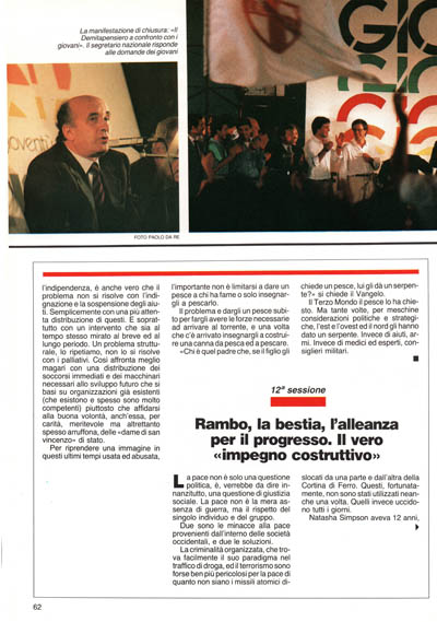 Il Terzo Mondo il pesce lo ha chiesto. Ma tante volte, per meschine considerazioni politiche e strategiche, l'est e l'ovest ed il nord gli hanno dato un serpente. Invece di aiuti, armi. Invece di medici ed esperti, consiglieri militari.