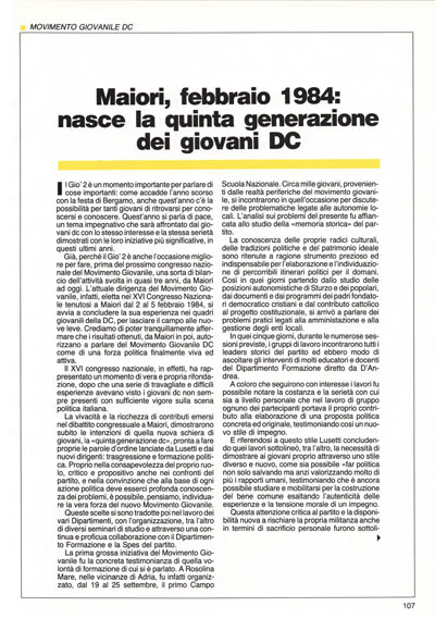 Tra le iniziative e le attività del Movimento Giovanile nazionale partite poco dopo Maiori (febbraio 1984) una menzione particolare va riservata a Nuova Politica, la rivista dei giovani dc, che esce mensilmente dal giugno 1984, diretta da Dario Franceschini.