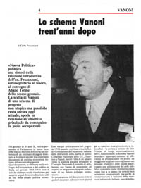 «Nuova Politica» pubblica una sintesi della relazione introduttiva dell'on. Fracanzani, sottosegretario al tesoro, al convegno di Abano Terme dello scorso gennaio. La scelta di Vanoni, di uno schema di progetto non utopico ma possibile resta ancora oggi attuale, specie in relazione all'obiettivo principale da conseguire: la piena occupazione.