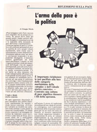Nell'esempio di uomini come De Gasperi, Sturzo, La Pira e Moro, occorre vedere la grande lezione di una visione internazionale della politica, come strumento privilegiato per la costruzione della pace. La necessità di una , maggiore disponibilità dei partiti e delle istituzioni verso i grandi temi che mobilitano le coscienze. Non basta proclamare la pace, occorre scoprire le strade per questa meta.