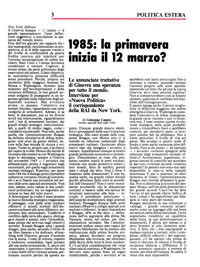 Un quadro delle trattative fra USA e URSS," dopo il vertice di Reykjavik: «... a tre passi da un accordo storico», l'occidente ha il dovere di sfruttare questa occasione per riaffermare le nuove basi di una pacifica convivenza internazionale.