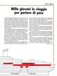 L'itinerario terra-mare del GIÒ 2 Boat: il significato politico, le motivazioni del programma, gli spazi culturali. Ancora una volta si vuole vincere la violenza del silenzio: solcare le acque agitate del Mediterraneo testimoniando lo spirito di fratellanza.