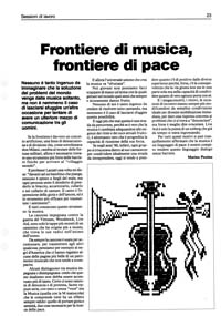 Giornale di bordo n. 3Nessuno è tanto ingenuo da immaginare che la soluzione dei problemi del mondo venga dalla musica soltanto, ma non è nemmeno il caso di lasciarsi sfuggire un'altra occasione per tentare di avere un ulteriore mezzo di comunicazione tra gli uomini.
