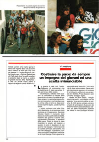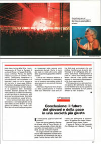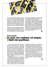 La pace, come progetto politico, morale e religioso, è il filo conduttore del secondo festival dei giovani dc. La pace, frutto della razionalità e della volontà, è per gli uomini che la vogliono fortemente. «Le strade siano piene di ragazzi e ragazze che si divertono».