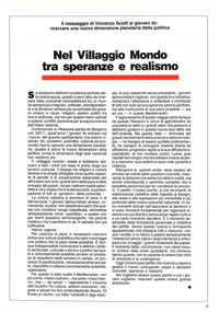 Nel messaggio di Scotti ai giovani DC il senso della ricerca di una nuova dimensione planetaria della politica. I valori più alti della cultura cattolica, sinonimo di pace e di democrazia. La necessità di coniugare speranze e realismo.