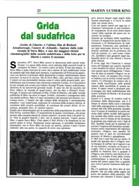 «Grido di Libertà» è l'ultimo film di Richard Attenborough, l'autore di «Ghandi». Ispirato dalla reale vicenda di Steve Biko, è uno dei maggiori ritratti cinematografici della società sudafricana e della lotta per la libertà e contro il razzismo