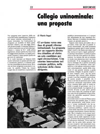 Ci avviamo verso una fase di grandi riforme istituzionali. La proposta per un rapporto diretto tra cittadino ed eletto: un solo candidato per ogni circoscrizione. Una enorme innovazione nel costume politico, nella selezione della classe dirigente.