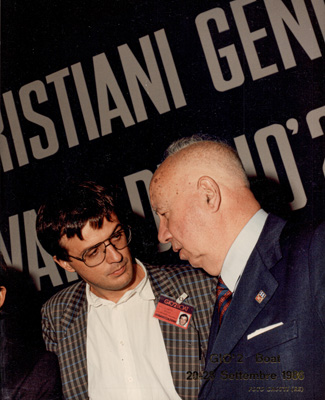 Fabio Petroni, Ciriaco De Mita, Renzo Lusetti (in piedi), Stefano Sandroni (di spalle)