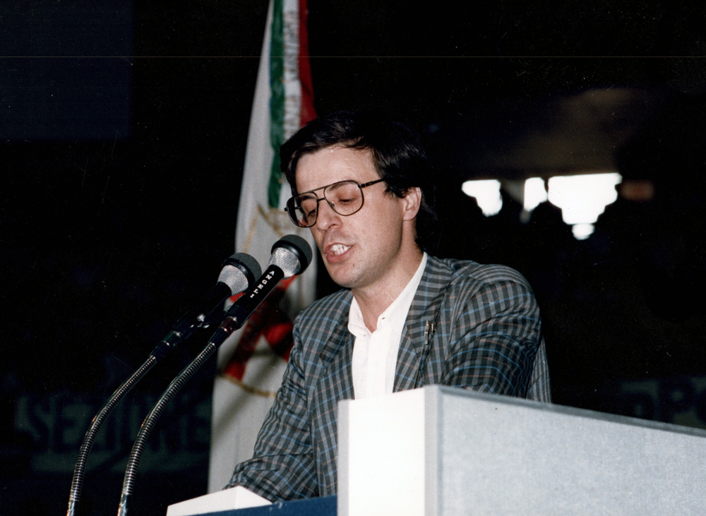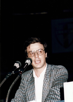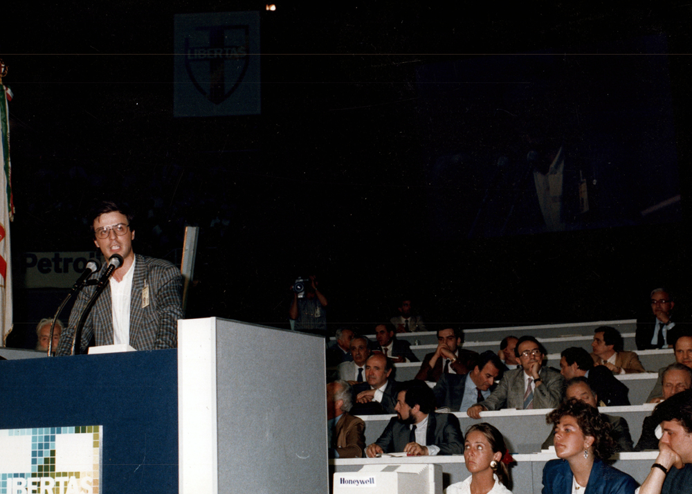 Renzo Lusetti a microfono. Alla sua destra: Fabio Danese, Mauro Fabris. Alla sua sinistra, Vincenzo Scotti.