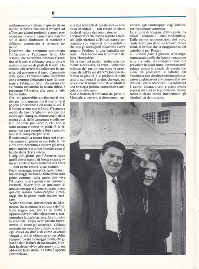 La vittoria di Reagan, d'altra parte, ha chiari connotati «neo-modernisti». Dalle prime scomposizioni del voto, confermate poi dalle successive proiezioni, si evince che la maggioranza dei cattolici è per Reagan.
