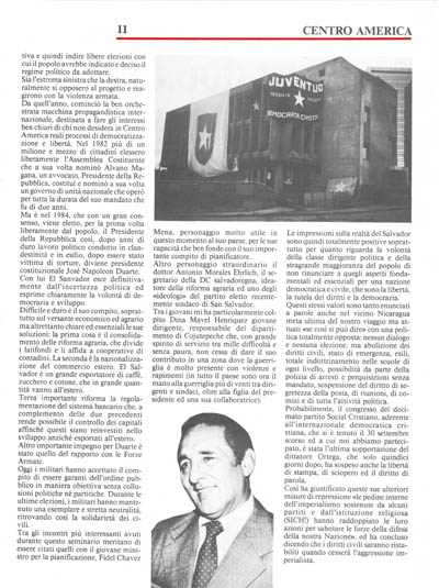 Tra i giovani mi ba particolarmentecolpito Dina Mavel Henriquez giovane dirigente, responsabile del dipartimento di Cojutepeche che, con grande spirito di servizio tra mille difficoltà e senza paura, non cessa di dare il suo contributo in una zona dove la guerriglia è molto presente con violenze e rapimenti (in tutto il paese sono ora il manoalla guerriglia più di venti tradirigenti e sindaci, oltre alla figlia del presidente ed una sua co11aboratrice).