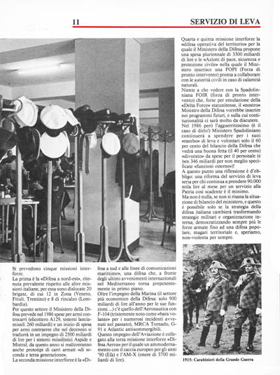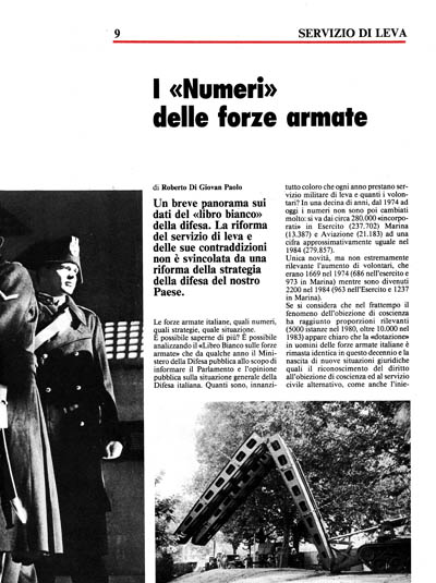 Se si considera che nel frattempo il fenomeno dell'obiezione di coscienza ha raggiunto proporzioni rilevanti (5000 istanze nel 1980, oltre 10.000 nel 1983) appare chiaro che la «dotazione» in uomini delle forze armate italiane è rimasta identica in questo decennio e la nascita di nuove situazioni giuridiche quali il riconoscimento del diritto all'obiezione di coscienza ed al servizio civile alternativo, come anche l'iniezione di democrazia rappresentativa (con elezione di rappresentanti militari per ogni livello), non ha intaccato minimamente la struttura delle nostre forze armate.
