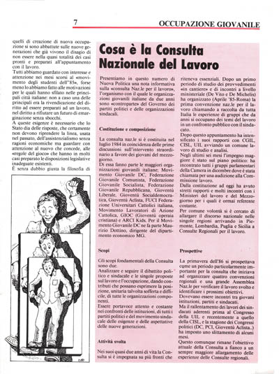 La consulta naz.le si è costituita nel luglio 1984 in coincidenza delle prime discussioni sull'intervento straordinario a favore dei giovani del mezzogiorno.
